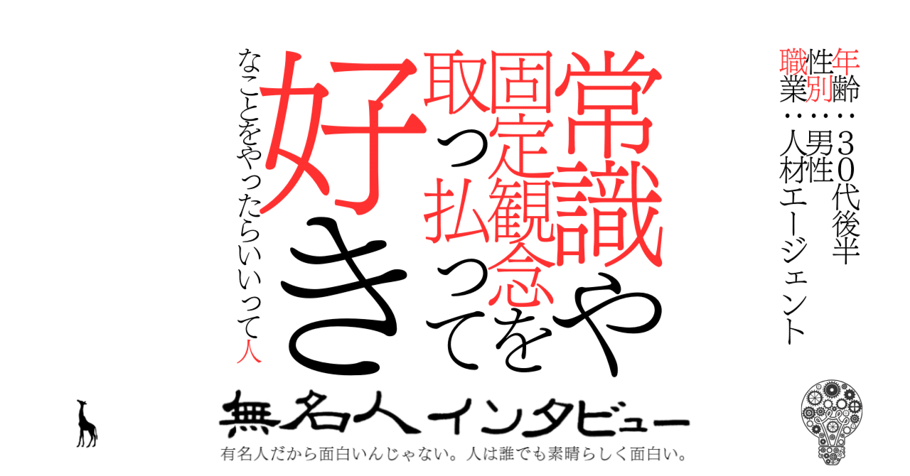「有名人だから面白いんじゃない。人は誰でも素晴らしく面白い」というコンセプトをもとに、どなたでもインタビューを実施しているメディアです。